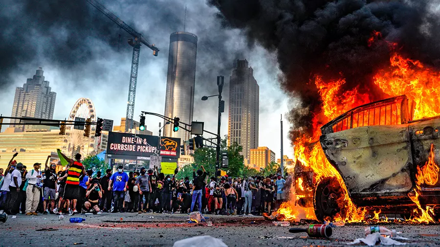 Diese Teile verweben sich miteinander und entladen sich in heftigen Angriffen: Angriffe auf beide Facetten des Polizeistaates – die Polizei selbst und ihre liberalen Gegenstücke, die nichts anderes wollen, als Proteste so gefügig und harmlos wie möglich zu halten, die friedlich Händchen halten, während sie die Massen von innen heraus spalten: „Ihr habt alle an diesen Märschen teilgenommen“, sagt Robinson, „diesen lächerlichen Märschen, bei denen es heißt: ‚Weiße nach vorne, Schwarze in die Mitte‘ – das ist nur eine andere Art, diese [rassischen] Grenzen auf raffiniertere Weise wieder einzuführen.“ (13) Revolt erstickt die Fantasie, dass solche erbärmlichen Darbietungen in irgendeiner Weise revolutionär sind.