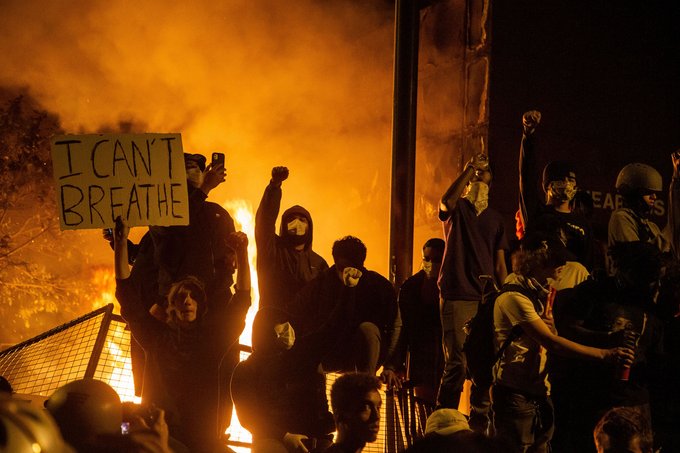 [68] Heute äußert die breite Öffentlichkeit Sympathie für die Zerstörung von Eigentum und die Schändung bestimmter Denkmäler. Mathew Impelli „54 Percent of Americans Think Burning Down Minneapolis Police Precinct Was Justified After George Floyd’s Death“ Newsweek, 3. Juni 2020.